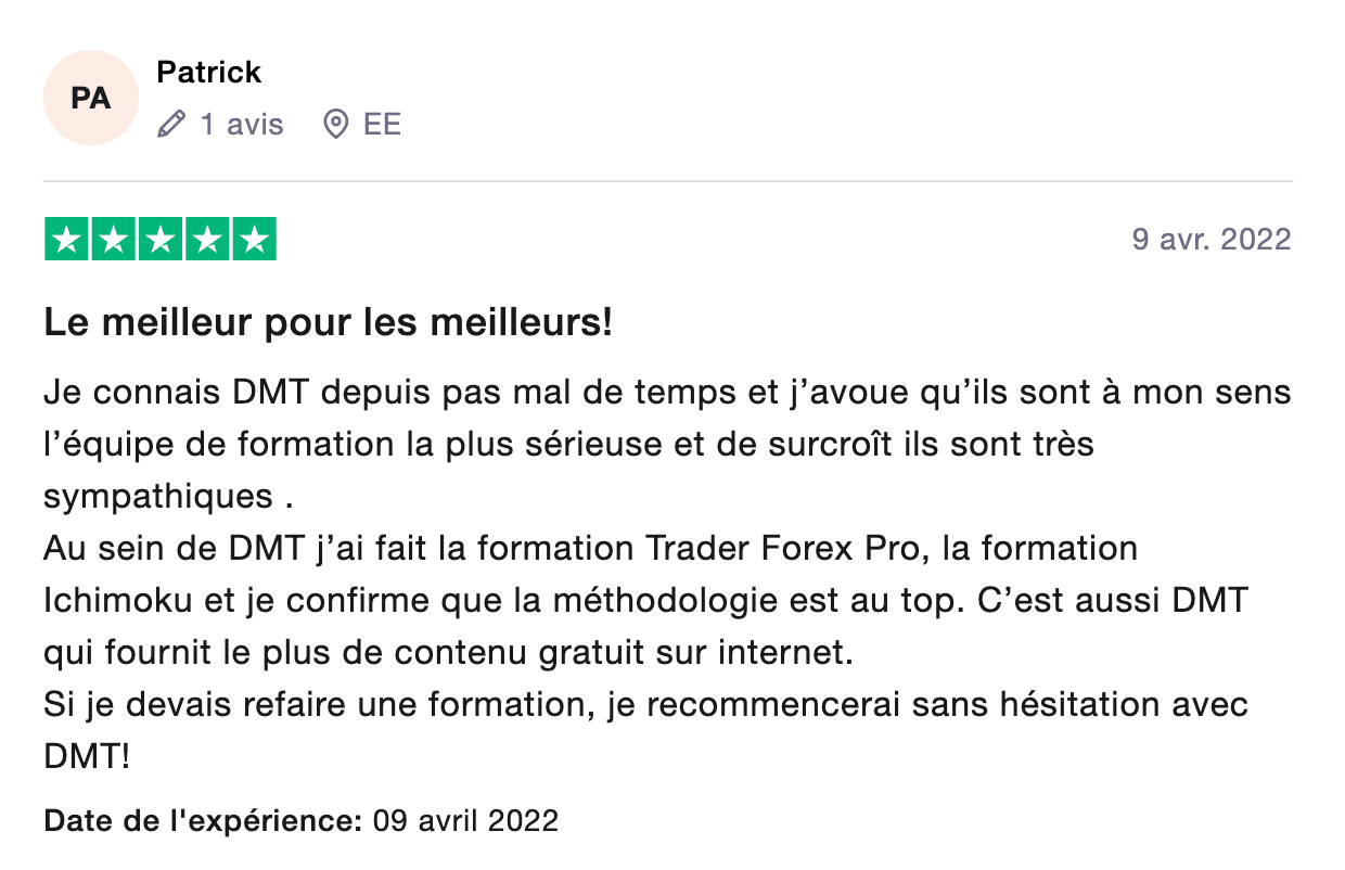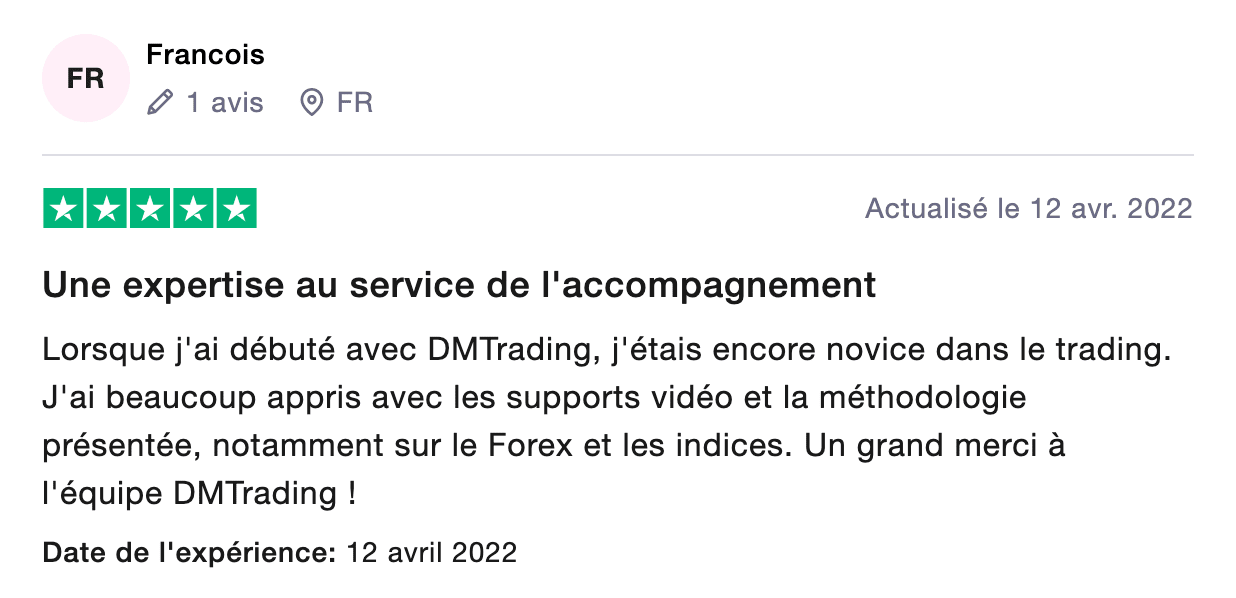 Chez DM Trading, notre but premier est de vous apporter un maximum de valeur gratuitement. En mettant la main sur ce guide, tout le monde est gagnant. Vous découvrez notre écosystème, jugez de notre sérieux et mettez un premier pas dans le trading, et par la suite, si vous voulez aller plus loin, vous pourrez prendre nos formations avancées.